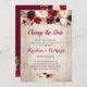 Event Postponed Announcement Template - Rustic Wood Burgundy Red Floral Change of Date Card.