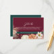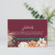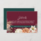 Elegant boho floral wedding details card in deep burgundy and emerald green with romantic peach, ivory, and wine-toned flowers. Perfect for rustic, moody, or fall weddings. Use to share your website, RSVP link, accommodations, and reception info. Fully editable — for help or questions, email bpkolman@gmail.com