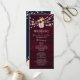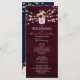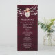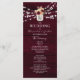 Elegant, modern, rustic wood marsala burgundy wedding program with monogram, beautiful watercolor flowers in mason jar, string lights and trendy calligraphy script.
