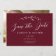 This elegant wedding save the date features a lovely burgundy background, hand-drawn wildflower sprig, and elegant typography. On the back is your photo in horizontal format. The photo on the back is removable if desired. It's a perfect design for a rustic yet elegant wedding! See the collection for more items!