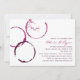 Rustic modern invitation design features chic burgundy red wine glass ring stains.