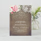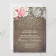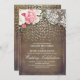 Rustic Burlap and Pink Flowers Lace Gold Wedding Invitation
