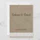 Perfect rustic formal or country wedding - textured burlap bordered with vintage lace top and bottom - a pretty brown satin ribbon and bow set this off for a formal chic country look - great for the old fashioned romantic wedding. NOTE: This paper product has no real burlap, ribbon or lace - these are artistically designed to appear real.