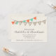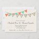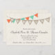 This rustic wedding invitation features burlap-look pennants along with turquoise and coral pennants strung in a festive arrangement. Perfect for a vintage, rustic, or outdoor wedding theme. Customize the text on the Pennants to suit your needs. Contact us for custom options.