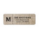 Custom designed return address label. Personalize it with your monogram initial, name and address or any other custom text. Click Customize It to change text fonts and colours, resize or move text around to create a unique one of a kind label design.