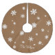 This tree skirt is accented with your family name on an illustrated burlap background covered in snowflakes.