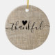 Rustic Burlap Farmhouse Thankful Ceramic Ornament