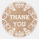 Rustic Burlap Floral Swirls Thank You Classic Round Sticker