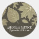 Rustic Burlap Gold Fall Leaves Wedding Favours Classic Round Sticker