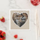 Decorate your rustic country wedding party with these personalized photo paper napkins featuring a heart photo frame on a burlap background adorned with string lights.