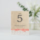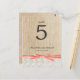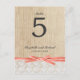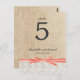 Rustic Burlap Lace Coral Ribbon Table Number Postcard