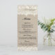 This custom wedding menu is the perfect combination of traditional and trendy. The burlap-look background is perfect for a rustic or vintage themed wedding and the lace-look accent adds a classic, romantic touch. Coordinates with full collection of matching IVORY Invitations, Save the Dates, RSVP cards, custom postage, and more! Email me for custom colours! NOTE - This is a high-quality image of burlap, lace, & ribbon; this invitation does not contain actual burlap, lace, or ribbon. Thanks!