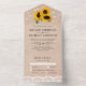 Rustic Burlap Lace String Lights Sunflower Wedding All In One Invitation