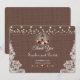 Unique card design featuring string lights, old lantern with marsala flowers bouquet on a burlap with lace corners background. Use Customize tool to add your info. See, also, my Vintage Lace Collection.