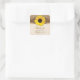 Rustic burlap, lace, and wood yellow sunflower wedding favour stickers. This unique rustic sunflower wedding favour sticker design features a bright yellow sunflower, a burlap and lace look background, and a wood and leather look emblem under the sunflower. A pretty design for a summer or fall / autumn wedding. It can work for rustic, barn, farm, western, or country style weddings. There are a lot of subtle details in the design. Browns, yellows, beige are the prominent colours.