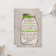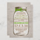 Pretty, rustic country wedding invitation with a hand drawn mason jar and a green twine bow around it. The burlap background is a printed design on the paper - not actual burlap fabric. Please contact me if you need help with customization or have a custom colour request.