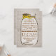Pretty, rustic country wedding invitation with a hand drawn mason jar and yellow twine bow around it. The burlap background is a printed design on the paper - not actual burlap fabric. Please contact me if you need help with customization or have a custom colour request.