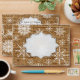 This rustic personalized brown FAUX burlap with white snowflakes A7 envelope matches the wedding invitation shown below. It is designed for you to use with your outgoing 5x7 invitations. Customize it to have your own return address on it. If you require any changes, or would like some other design element added to the envelope, please email niteowlstudio@gmail.com.