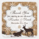 This festive 1.5" square shaped brown FAUX burlap with white snow flakes wedding, bridal or couples shower favour sticker and/or envelope seal has layers and layers of snowflakes with silhouettes of two deer (a doe and buck) sitting and standing on snow covered hills matches the shower invitation shown below. If you need any other matching items, please email niteowlstudio@gmail.com.