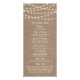 Simple mais élégant, les lampes à cordes de la collection rustique mariage burlap est un design étonnant avec de belles lumières à cordes blanches suspendues sur un arrière - plan effet burlap, qui est parfait pour toute célébration mariage rustique. Ces programmes peuvent être personnalisés pour votre occasion spéciale et rendraient la commande parfaite de service pour votre mariage, douche nuptiale, fête de fiançailles, fête d'anniversaire et bien d'autres occasions spéciales. Ajoutez votre libellé personnalisé à cette conception à l'aide des cases "Modifier ce modèle de conception" situées à droite de l'élément, ou cliquez sur le bouton bleu "Customiser" pour arranger le texte, modifier les polices et les couleurs et ajouter des informations ou des images supplémentaires à cette conception. AFFICHER LES ÉLÉMENTS CORRESPONDANTS POUR CETTE COLLECTION