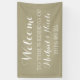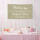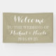 Custom name and wedding date welcome to our wedding sign with rustic country burlap pattern and vintage style handwritten lettering. A perfect personal touch for your rustic or woodland wedding.