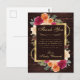 Gorgeous Rustic Watercolor burnt orange and red fall autumnal flowers floral design on a brown wood background with gold foil border