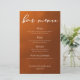 Rustic Burnt Orange Simple Autumn Wedding Bar Menu
