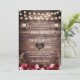 Rustic Burgundy Flowers Vintage Lanterns Barn Wood Fall Wedding Invitations.