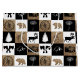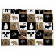 A beautiful camping outdoors adventure themed design. Each square depicts a scene or item from a camping trip like a bear, axes, deer, trees, canned food, tent, compass, camera and mushroom. The perfect decorative design, ideal gift for any occasion boy or girl.