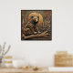 Rustic Carved Wood Bear Pine Trees Setting Sun Poster