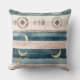 Rustic celestial stripe pattern throw pillow featuring moon phases, sun symbols, and tribal-inspired details in earthy teal and clay tones. A calm, grounding design ideal for boho lovers, spiritual creatives, and nature-inspired interiors. A thoughtful gift for moon watchers, astrology fans, and earthy souls.