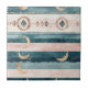 Rustic celestial stripe pattern ceramic tile featuring moon phases, sun symbols, and tribal-inspired details in earthy teal and clay tones. A calm, grounding design ideal for boho lovers, spiritual creatives, and nature-inspired interiors. A thoughtful gift for moon watchers, astrology fans, and earthy souls.