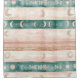 Rustic celestial stripe pattern shower curtain featuring moon phases, sun symbols, and tribal-inspired details in earthy teal and clay tones. A calm, grounding design ideal for boho lovers, spiritual creatives, and nature-inspired interiors. A thoughtful gift for moon watchers, astrology fans, and earthy souls.