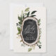 Rustic wedding chalk board and wood slice baby shower invite. With beautiful watercolor foliage, white florals, wood slice and script hand writing. This modern invite is sure to set the style for your upcoming party.