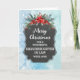 Merry Christmas for granddaughter in law card with rustic country chalkboard pattern and winter foliage with poinsettias.
