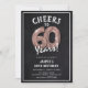 Celebrating turning 60! These 60th birthday party invites are designed with the title 'Cheers to 60 Years!'. Featuring a rustic chalkboard background, rose gold number sixty helium balloons, trendy white typography and a simple birthday party template that is easy to customize.