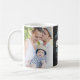 Rustic Chalkboard Two Photo Blue Father's Day Mug. Customizable father's day mug featuring rustic typography and faux chalkboard background. Personalize by adding two of your favourite photos and adding your own details. Matching items are available.