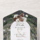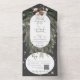 AVAILABLE WITH OR WITHOUT A QR CODE TO SCAN. This design features a rustic green pine and pinecone bouquet on a soft charcoal black background with white flowers. It is accented with a white sparkle overlay to illustrate the magic of the beautiful winter holidays. Perfect for a Christmas or winter wedding. Personalized All-In-One invitations are a unique combination of both a beautifully printed custom invitation with an easy to tear off perforated RSVP postcard. And they are so easy to use! You simply fold, then seal the back flap with the three included clear stickers, and mail. And when your guests receive your custom invite, they just tear the perforated RSVP Card off and drop it back in the mail to you!