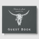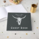 Rustic Charcoal Grey White Western Cow Skull Guest Book