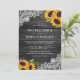 Rustic Charcoal Grey Wood Lace Sunflower Wedding Invitation