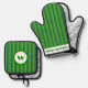 Add some country style to your kitchen with these Rustic Charm Green Striped Oven Mitt & Pot Holder Sets. The stripes in three captivating shades of green create a pleasing visual effect against the white customization areas, which are outlined in a complementary shade of green. A personalized green monogram letter on the hot pad and custom text at the bottom of the oven mitt add a unique touch, making these sets perfect for a personal gift. Available as a set or individually - you can choose to get just an oven mitt or just a pot holder. Order yours today to add sophistication to your kitchen or to brighten the day of a friend or loved one with a thoughtful, personalized present.