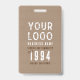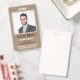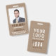 This rustic charm business employee badge features a simple yet professional kraft paper background with rough textured white and brown typeface. Simply replace your employee's name, professional title, contact information in the front, upload your logo and update your business information including your tagline, established date, location in the back.