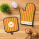 Add some country style to your kitchen with these Rustic Charm Orange Striped Oven Mitt & Pot Holder Sets. The stripes in three captivating shades of orange create a pleasing visual effect against the white customization areas, which are outlined in a complementary shade of orange. A personalized orange monogram letter on the hot pad and custom text at the bottom of the oven mitt add a unique touch, making these sets perfect for a personal gift. Available as a set or individually - you can choose to get just an oven mitt or just a pot holder. Order yours today to add sophistication to your kitchen or to brighten the day of a friend or loved one with a thoughtful, personalized present.