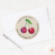 Round stickers with cherry illustration and curved “Made With Love” text