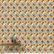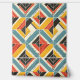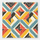 This artwork presents a dynamic and textured pattern of chevron and triangular shapes arranged in a bold mosaic. The design features a vibrant yet earthy colour palette of teal, mustard yellow, red, and black, set against a cream background. The pattern is distressed with subtle scratches and rough textures, giving it a rustic, worn-in appearance. The geometric arrangement creates a sense of movement and depth, while the bold lines and contrasting colours evoke a sense of energy and vitality, reminiscent of vintage textiles and handcrafted designs.