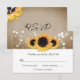 Custom rustic sunflower wedding RSVP cards. Perfect card design to complement your rustic country, backyard, garden, or barn wedding party inspired by sunflower flowers. Matching items available to complement these rustic chic wedding RSVP cards.
