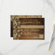 Gold damask contrasts beautifully with the dark rustic barn wood on the country rustic chic wedding response card. Bride and groom's names and wedding date on reverse side completes the beautiful rustic elegance look.