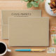 Custom 5 x 7 wedding invitation mailing envelopes feature stylish black return address text and a printed background with a rustic kraft brown paper textured appearance.