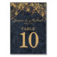 Rustic Chic Navy Blue Gold String LIghts Wedding Table Number