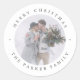 These elegant, rustic style Christmas stickers feature your personal photo with a simple white background and classic, dark grey text that says "Merry Christmas", but you can change it to any greeting you prefer. The perfect minimalist look for your holiday cards and gifting!